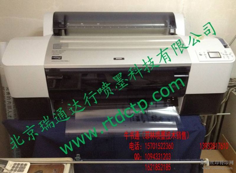 北京瑞通达行喷墨科技有限公司:喷墨制版系统(喷墨菲林打印机), 适用于书刊,包装,彩色印刷,大幅面丝印广告,标牌,印花,玻璃,版画,等行业制版。设备规格有0.43米宽,0.61米宽,1.118米宽,1.625米宽,1.87米宽,长度都是无限长。其输出菲林成本紧是传统照排机的一半。提供配套机器的相应喷墨制版软件(TRD4.0、EVISION)和相应的耗材,如喷墨制版透明防水胶片、不防水胶片、制版墨水,胶片规格齐全,特别推出1.87米*30米的胶片规格为超大幅面的客户提供了便捷。 售RTD喷墨菲林打印机可100%透明防水。承接大幅面丝网印菲林输出业务,最大幅面可以出到1.82米宽*10米长。承接菲林机售后及打印机维修等业务。
